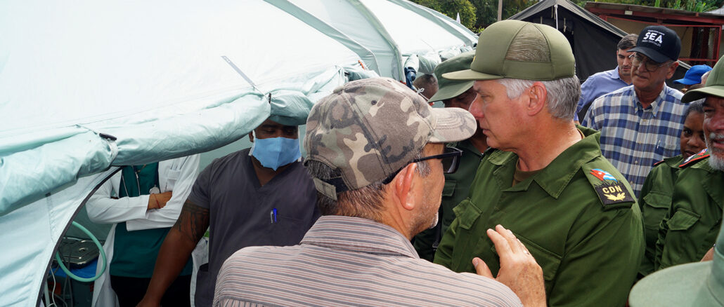✔️ Visita Diaz-Canel hoy hospital de campaña donado por La India en Río Cauto.