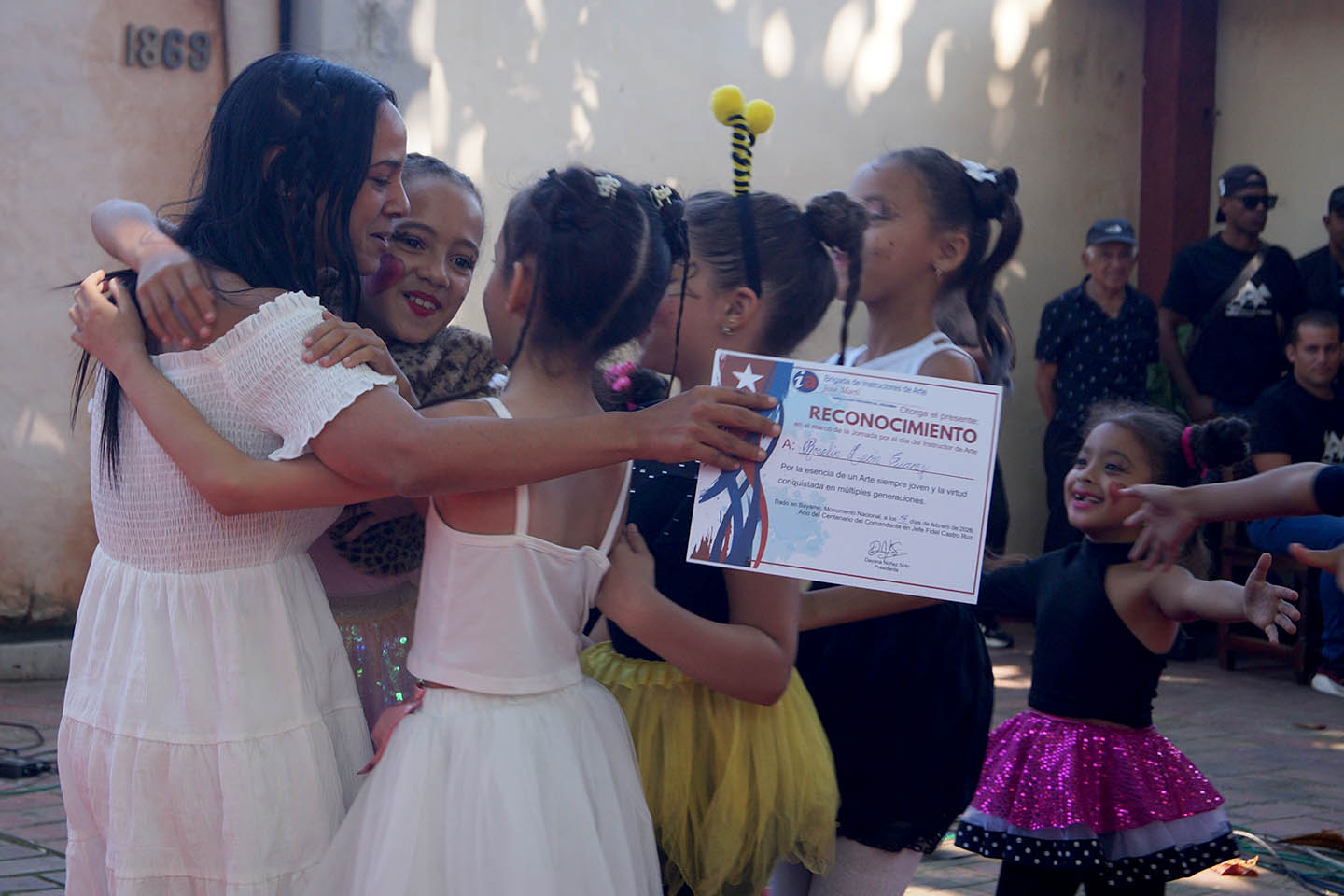 Roselyn las escucha con ternura. Sabe que detrás de esas voces hay historias que el arte ha transformado. La madre de Victoria, Yaimé Tamayo, observa desde cerca, con una mezcla de orgullo y alivio: