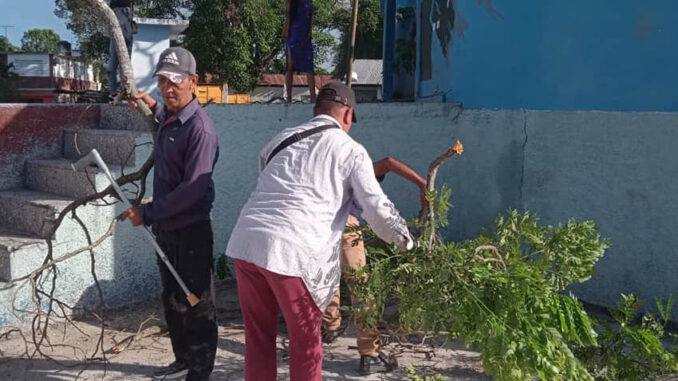 Trabajadores de diferentes entidades garantizan la limpieza de calles y manzanas utilizando medios propios, en colaboración con la Unidad Empresarial de Servicios Comunales.