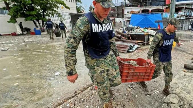 Ante los estragos ocasionados entre el lunes y el jueves último por las lluvias derivadas de la Perturbación Tropical 90-E, la Secretaría de Defensa desplegó seis mil 340 elementos, a los cuales se suman siete aeronaves, una cocina móvil y dos plantas potabilizadoras.