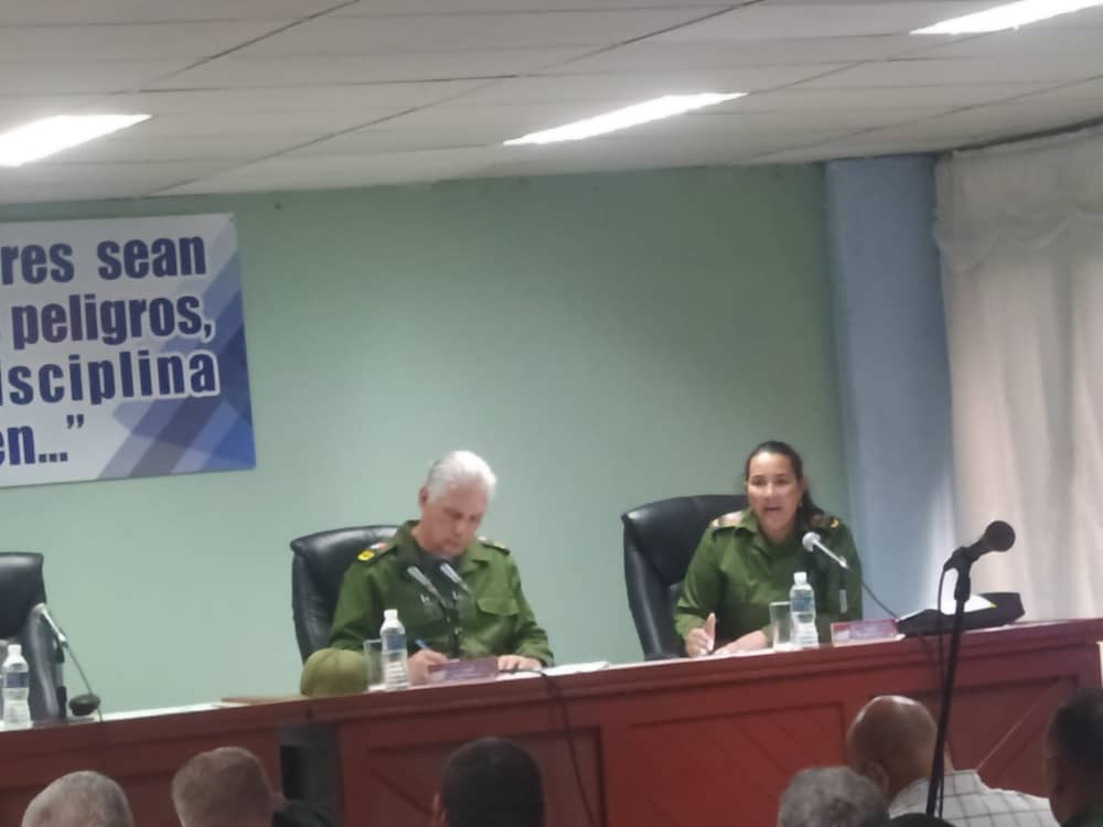 Al término de su visita, Díaz-Canel se reunió con el Consejo de Defensa Provincial, la presidenta, Yudelkis Ortiz Barceló informó al mandatario cubano sobre la marcha de los trabajos en los frentes más importantes de la vida de Granma.
