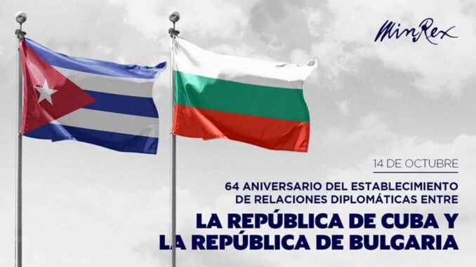 Cuba y Bulgaria formalizaron sus lazos diplomáticos el 14 de octubre de 1960 y desde entonces refuerzan la amistad y colaboración entre sus gobiernos y pueblos, según reiterados mensajes de la Cancillería cubana.