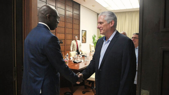 La delegación arribó la víspera a La Habana en visita de trabajo, y entre sus primeras actividades fue recibido por el jefe de Estado cubano.