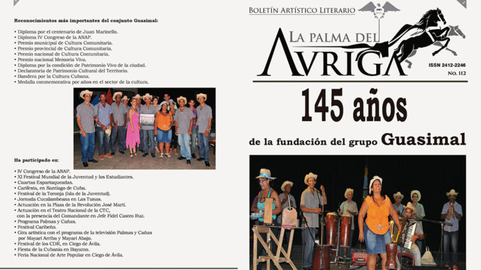 El boletín artístico literario La Palma del Auriga dedicó su número 112 a los 145 años de la fundación del grupo Guasimal.
