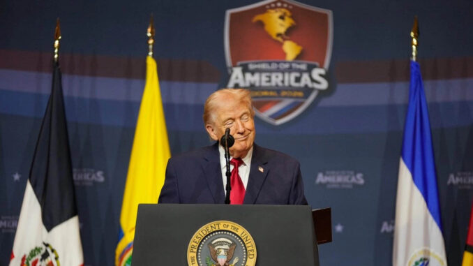 Doce primeros mandatarios de América Latina y el Caribe acudieron a la cita con el presidente de los Estados Unidos de América, en Doral, Florida, quien los convocó a la firma del así llamado “Escudo de las Américas”.