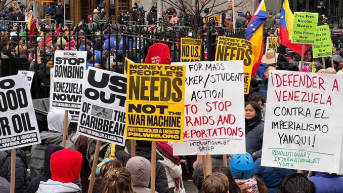 La coalición antibelicista ANSWER alertó que Estados Unidos estaba iniciando una nueva guerra basada en mentiras.
