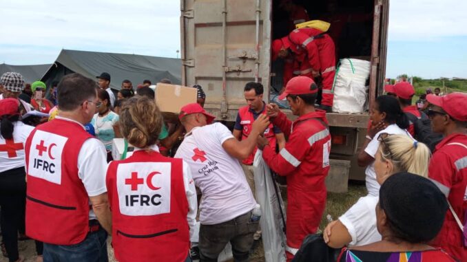 La Cruz Roja entregó, este 17 de noviembre, un donativo de kits familiares para personas damnificadas por el huracán Melissa en Río Cauto, territorio más impactado por este evento ciclónico.