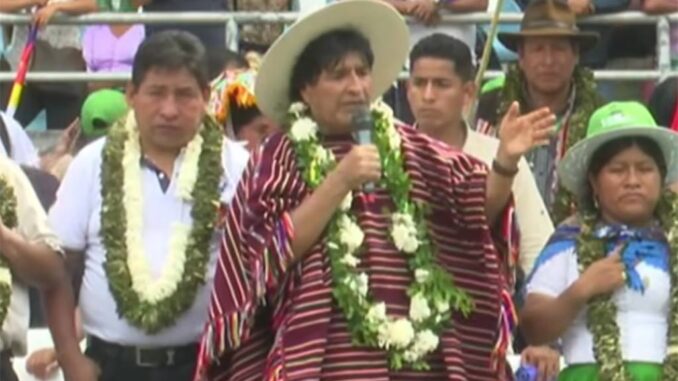Morales permanece protegido por miles de sus seguidores en el Chapare, Cochabamba, bajo una orden de aprehensión por el presunto delito de trata de personas.