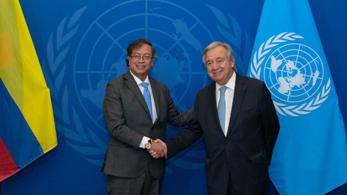 Naciones Unidas-. El secretario general de la ONU, António Guterres, recibió hoy al presidente de Colombia, Gustavo Petro, para intercambiar sobre el proceso de paz en Colombia y la venidera Conferencia de las Naciones Unidas sobre Biodiversidad (COP16).
