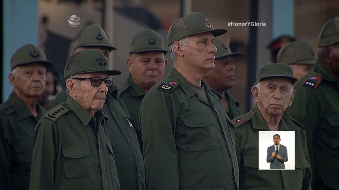 La Habana-. El líder de la Revolución cubana, Raúl Castro, y el presidente Miguel Díaz-Canel, encabezaron hoy el primer homenaje póstumo a los 32 combatientes caídos durante la agresión militar de Estados Unidos a Venezuela.