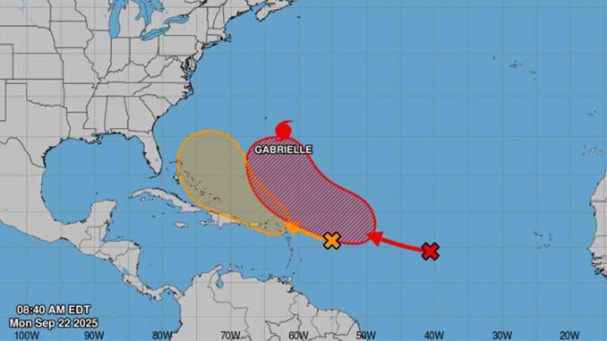 Washington-. Con vientos máximos sostenidos de 150 kilómetros por hora (km/h), Gabrielle podría fortalecerse más hoy y convertirse en un gran huracán al aproximarse esta noche a las islas Bermudas.