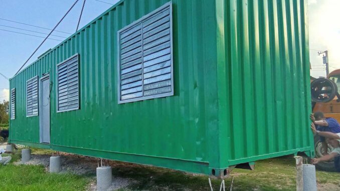 En el municipio de Jiguaní se conforman cinco unidades habitacionales a partir de contenedores, informó la Empresa de Construcción y Montaje de Granma, con espacios que incluyen sala, comedor-cocina, baño y dos habitaciones.