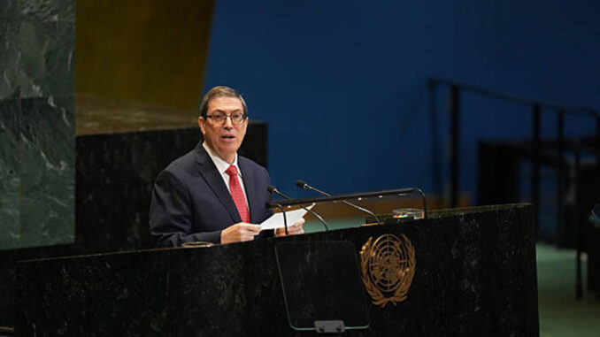 La Habana-. Bruno Rodríguez Parrilla, ministro de Relaciones Exteriores de Cuba intervino hoy durante el debate general del 80 período de sesiones de la Asamblea General de las Naciones Unidas, donde denunció el genocidio en Gaza y defendió el derecho del pueblo palestino a una vida de paz y a un estado independiente sin la ocupación sionista, igualmente abogó por el cese de las amenazas imperialistas contra la República de Venezuela y reafirmó el total apoyo de Cuba al gobierno bolivariano y al presidente Nicolás Maduro Moros.