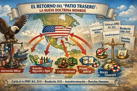 Del mismo modo, al declarar a América como “esfera exclusiva de influencia”, la doctrina niega la libertad de los Estados latinoamericanos de establecer relaciones con otras potencias, lo que constituye una forma de neocolonialismo incompatible con el derecho internacional contemporáneo.