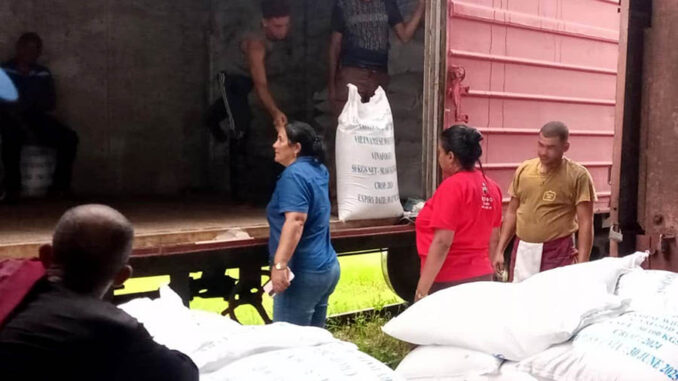 Tres casillas contentivas con 180 toneladas arribaron vía ferrocarril al almacén 654, Centro de carga y descarga de la Empresa provincial distribuidora de alimentos (EMPA), en Bayamo, y el resto en cinco camiones procedentes del puerto santiaguero.