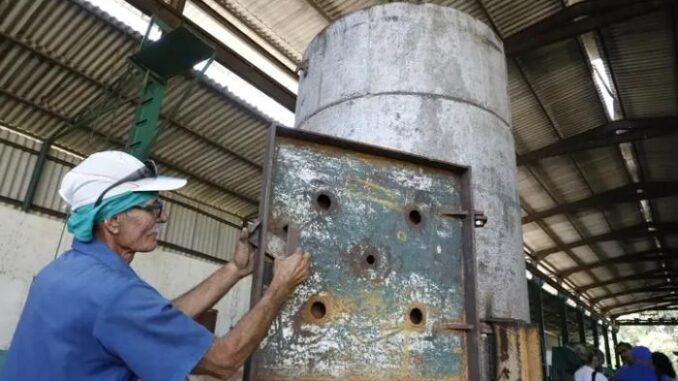 Este horno de biomasa, diseñado y montado por los trabajadores de la Empresa de Talleres Agropecuarios Granma, fue construido con materiales reciclados, optimizando los recursos locales.