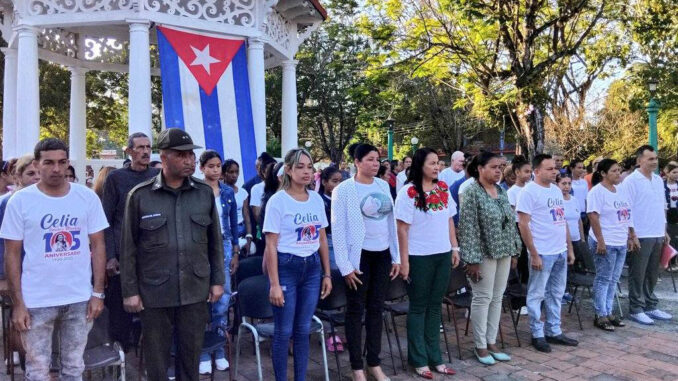 Yudelkis Ortiz Barceló, primera secretaria del Partido en Granma, y la gobernadora Yanetsy Terry Gutiérrez depositaron una ofrenda floral frente al monumento que perpetua la memoria de Celia en el Parque de los Mártires, de la localidad costera, donde permanece como guía perenne de las nuevas generaciones.