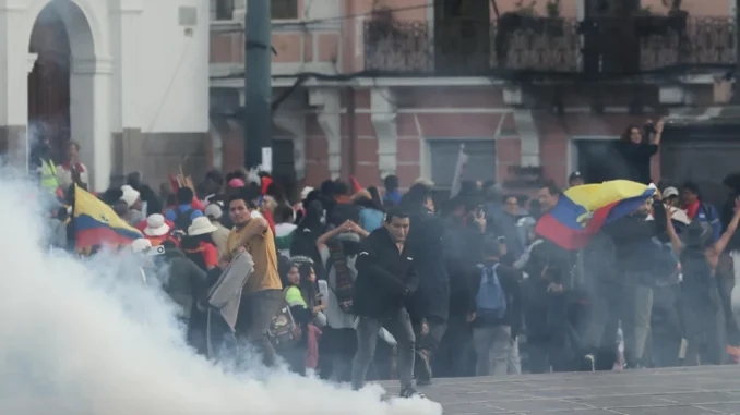 La Policía Nacional de Ecuador reprimió viernes con bombas de estruendo y gases lacrimógenos una movilización de organizaciones sociales, sindicatos y colectivos que protestaban en Quito contra las políticas del Gobierno de Daniel Noboa.