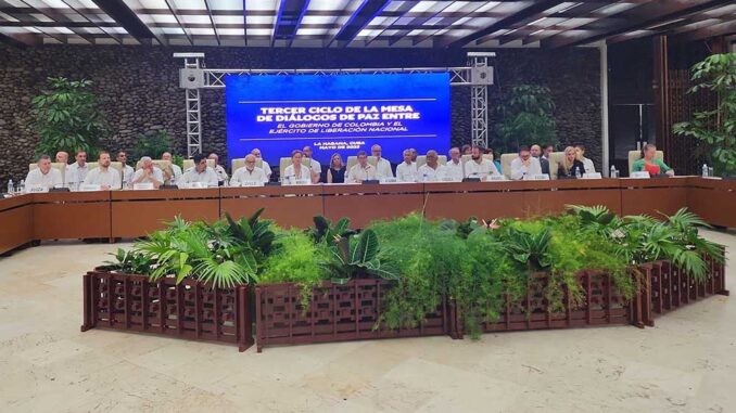 La Habana-. El Tercer ciclo de Diálogos de Paz entre el Gobierno de Colombia y el Ejército de Liberación Nacional (ELN) comenzó hoy en esta capital, donde el canciller Bruno Rodríguez Parrilla afirmó que Cuba continuará invariable en su posición de actuar de forma discreta, imparcial y responsable en el interés de hallar una solución política al conflicto armado en ese país.