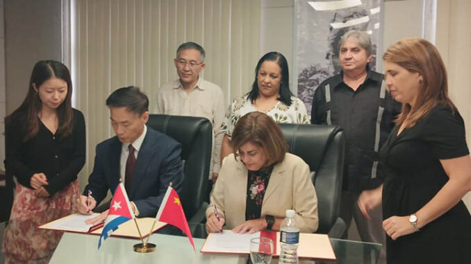 La donación se formalizó mediante la firma del Acta de Entrega y Recepción por el embajador chino en Cuba, Hua Xin, y la viceministra del Ministerio del Comercio Exterior y la Inversión Extranjera, Deborah Rivas, en presencia del presidente del ICS, Alfonso Noya Martínez y la ministra de Comunicaciones, Mayra Arevich.