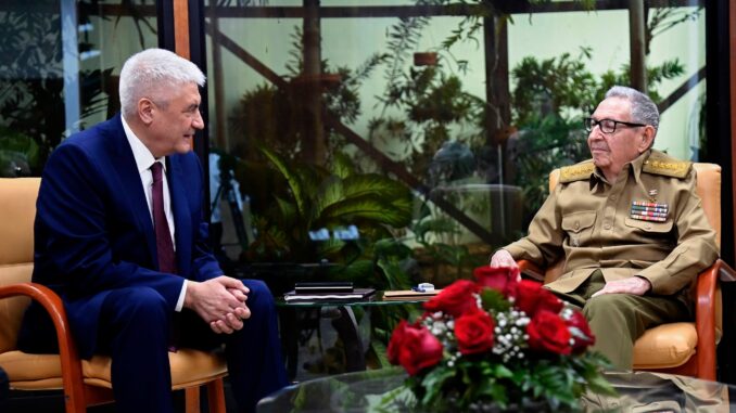 El General de Ejército Raúl Castro Ruz recibió en la tarde de este martes al Ministro del Interior de la Federación de Rusia, General de la Policía Vladimir Alexandrovich Kolokoltsev.