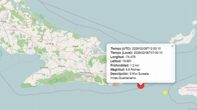 La red de estaciones del Servicio Sismológico Nacional Cubano ha registrado un terremoto reportado como perceptible a las 7:00 am hora local, localizado en las coordenadas 20.16 grados de latitud norte y los 74.44 grados de longitud oeste, a una profundidad de 7.1 km y con una magnitud de 5.6 situado a 24.0 km al sureste de Imías.