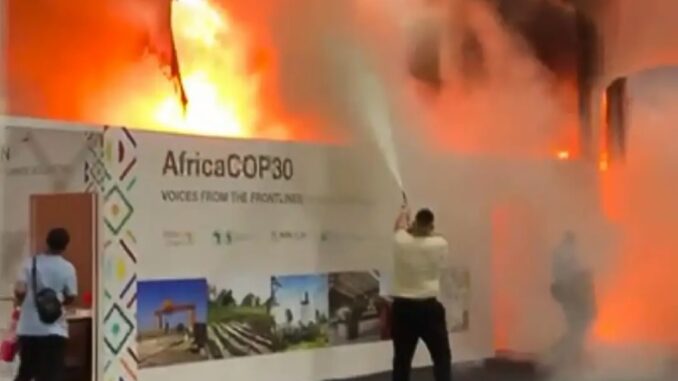 El incendio retrasó las polémicas negociaciones entre ministros, a una jornada del cierre de la COP30.