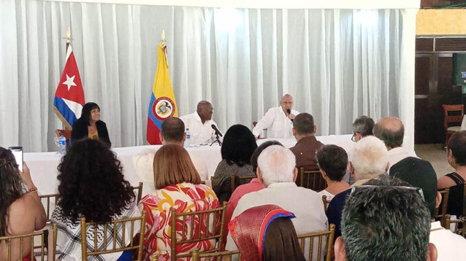 A la reunión, celebrada en la sede vacacional Los Trupillos, acudieron senadores del Partido Comunes, representantes de la bancada de la coalición progresista Pacto Histórico, líderes sindicales y más de un centenar de activistas solidarios con la isla.