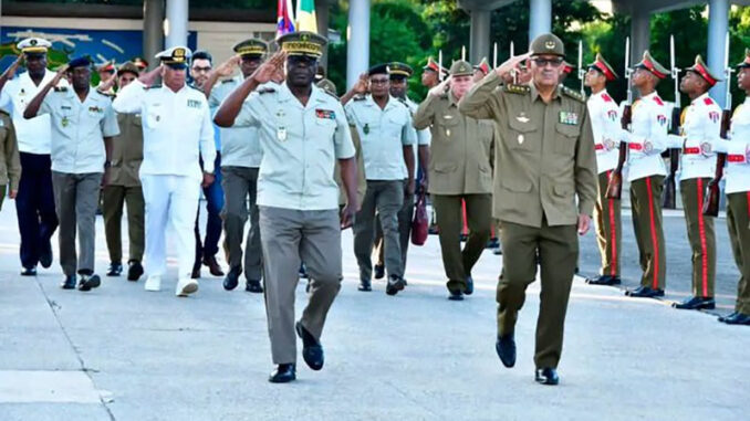 La Habana-. El general de cuerpo de ejército Roberto Legrá, viceministro primero de las Fuerzas Armadas Revolucionarias (FAR), recibió oficialmente hoy al general de división Guy Blanchard Okoi, jefe del Estado Mayor General de las Fuerzas Armadas del Congo.